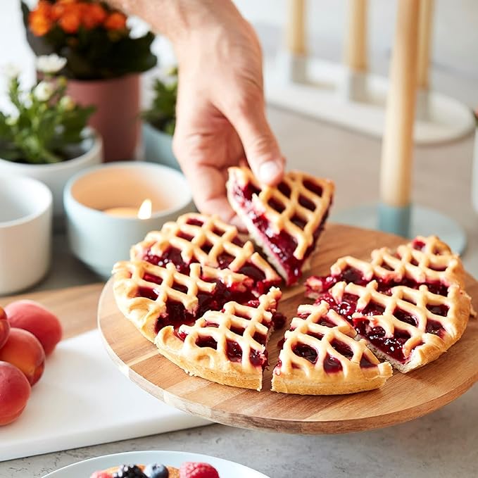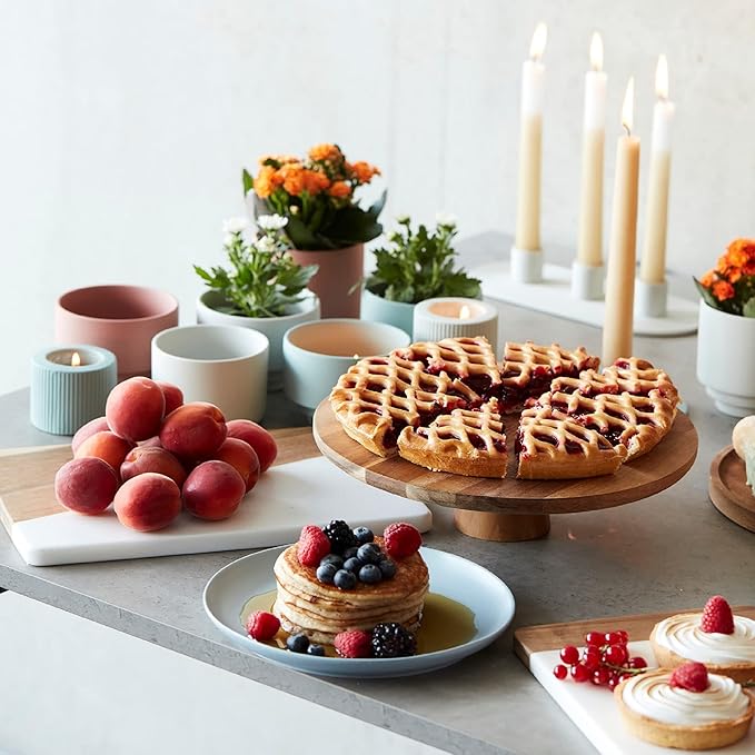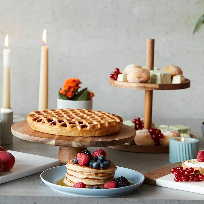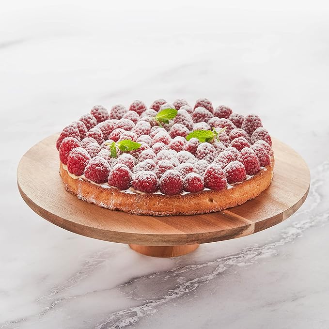 Piatto per torta con base, accessori per torte e accessori da forno, in legno di acacia, 7,5 cm di altezza, 28 cm